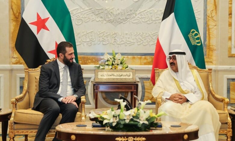 عُقدت اليوم جلسة مباحثات بين أمير الكويت الشيخ مشعل الأحمد الجابر الصباح من الجانب الكويتي، والرئيس السوري أحمد الشرع تناولت العلاقات بين البلدين وتطورات على الصعيد الإقليمي والدولي.