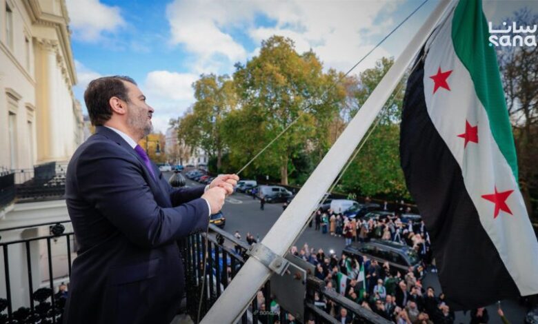 الشيباني يقود مراسم رفع العلم السوري في لندن وسط حضور الجالية