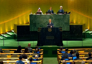 ودعا البيان المجتمع الدولي إلى الانتقال من الأقوال إلى الأفعال، وتسريع تنفيذ بنود إعلان نيويورك عبر خطوات ملموسة ولا رجعة فيها.