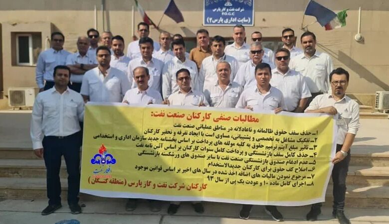 تجمعات احتجاجية لعمال صناعة النفط والغاز في الأحواز للمطالبة بحقوقهم المالية