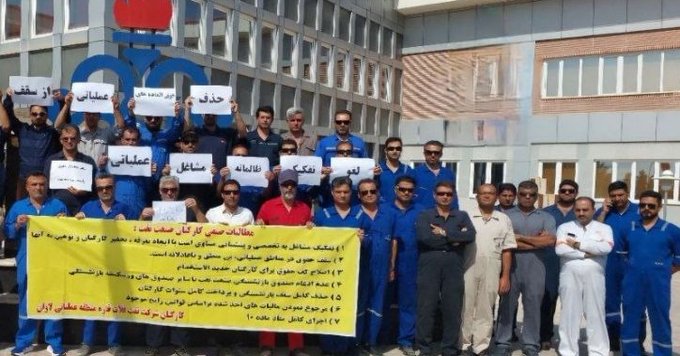 نظم عدد من موظفي شركة النفط البحرية في منطقة لافان جنوب الأحواز، اليوم، مظاهرة احتجاجية أمام مقرات العمل، وذلك للمطالبة بتحسين أوضاعهم الوظيفية والمالية، في ظل ما وصفوه بـ”التمييز والإجحاف المستمر” في حقوقهم.