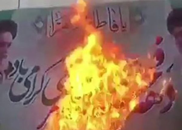 ثوار الأحواز يحرقون لافتة دعائية للحرس الثوري الإيراني