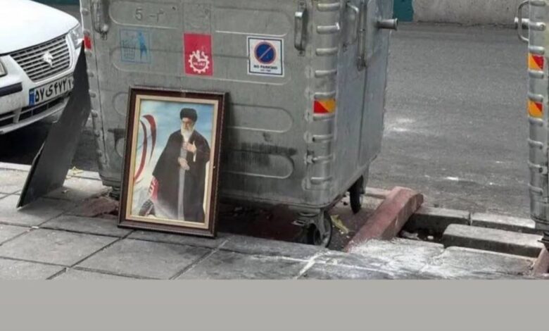 وتداول نشطاء على مواقع التواصل الاجتماعي صورًا أثارت اهتمامًا واسعًا، تُظهر صورة للمرشد الإيراني علي خامنئي وهي ملقاة على الأرض بجانب صناديق القمامة في أحد شوارع الأحواز، في مشهد اعتبره كثيرون تعبيرًا عن حجم الغضب الشعبي المتراكم تجاه السياسات الإيرانية في الأحواز.