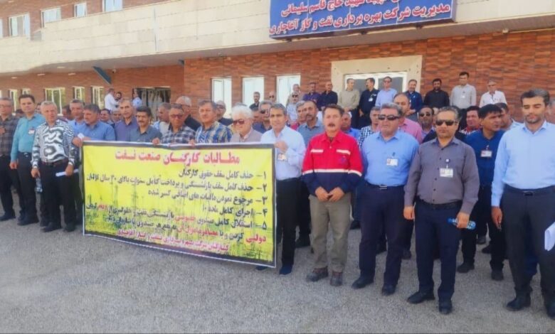 عمال آغاجاري للنفط والغاز يحتجون رفضاً للقيود الوظيفية والمادية