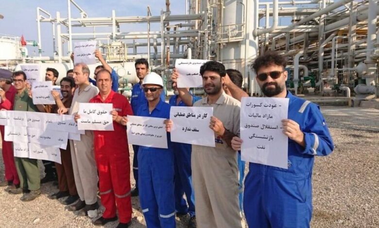 عمال النفط في الأحواز يحتجون على القيود المفروضة على الأجور ويطالبون بإصلاحات شاملة