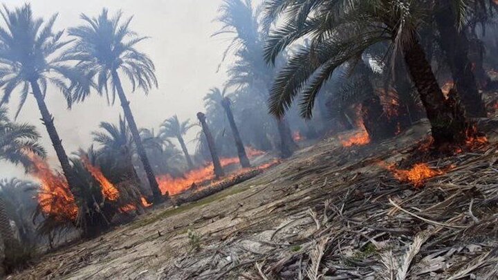 غضب أهالي الأحواز بعد خسائر فادحة في بساتين النخيل نتيجة الحريق والجفاف