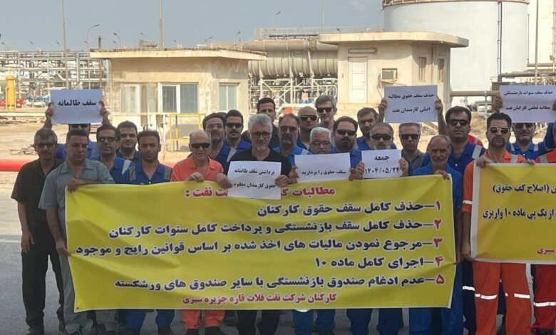 غضب في منشآت النفط البحرية بالأحواز بسبب الأجور المتأخرة وتردي الحقوق