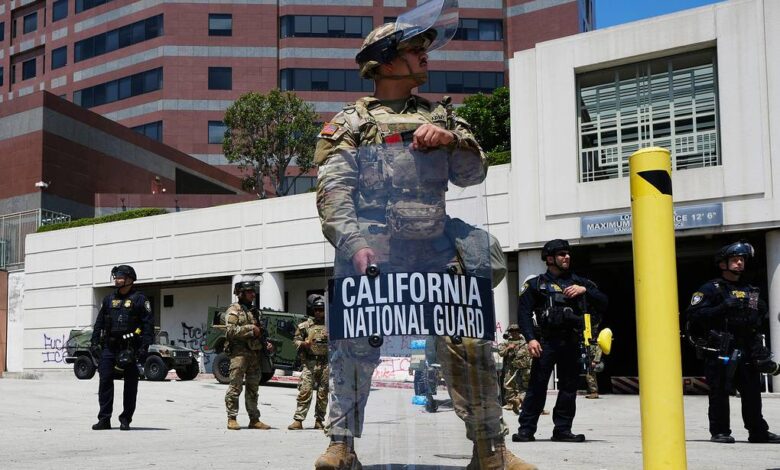 في تطور آخر، أمر الرئيس الأمريكي دونالد ترامب بنشر 2000 جندي من قوات الحرس الوطني في لوس أنجلوس للتعامل مع الاضطرابات، دون التنسيق مع حاكم ولاية كاليفورنيا، جافين نيوسوم، ما أثار أزمة دستورية. وردّ نيوسوم برفع دعوى قضائية ضد ترامب ووزير الدفاع في ذلك الوقت، بيت هيجسيث، على خلفية ما وصفه بـ”تجاوز صلاحيات الولاية”.