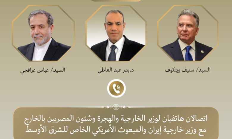 أجرى وزير الخارجية المصري الدكتور بدر عبد العاطي اتصالين هاتفيين بكل من وزير الخارجية الإيراني عباس عراقجي، والمبعوث الأمريكي الخاص للشرق الأوسط ستيف ويتكوف.