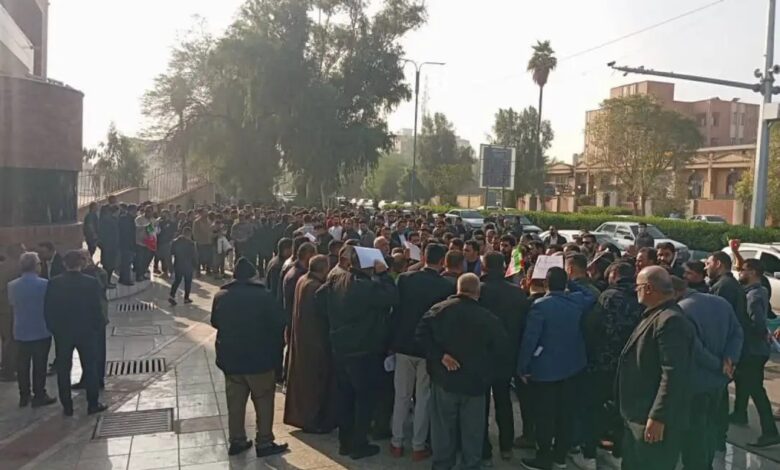 موظفو الركائز النفطية الثالثة بالأحواز يتظاهرون ضد تسليم الحقول لشركة خاصة
