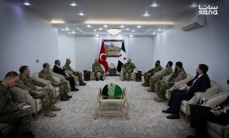 دمشق، سوريا – التقى وزير الدفاع السوري، اللواء مرهف أبو قصرة، اليوم السبت في مكتبه بدمشق، قائد القوات البرية في الجيش التركي، الجنرال ميتين توكال، والوفد المرافق له.