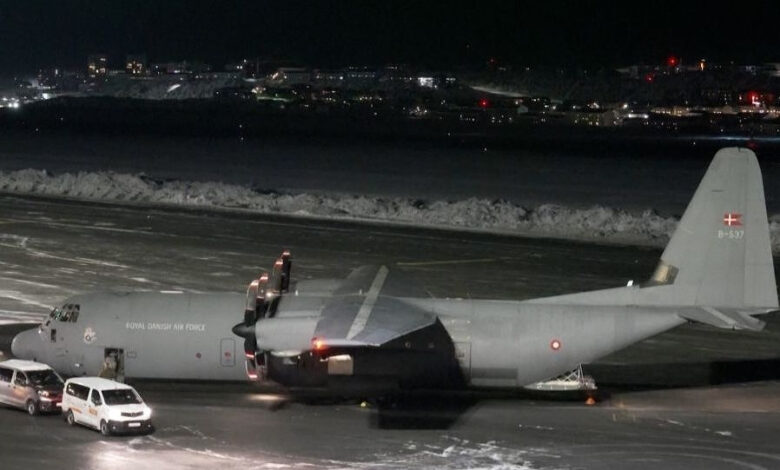 وذكرت الصحيفة أن طائرة نقل عسكرية دنماركية هبطت ليل الثلاثاء في مطار نوك، عاصمة غرينلاند، وعلى متنها جنود دنماركيون وممثلون عن القوات المسلحة الفرنسية. وفي التوقيت ذاته تقريبًا، هبطت طائرة دنماركية أخرى من طراز «هيركوليز» في مطار كانجيرلوسواك غرب الجزيرة، مشيرة إلى أن الطائرتين حلّقتا دون تشغيل أجهزة الإرسال والاستقبال.