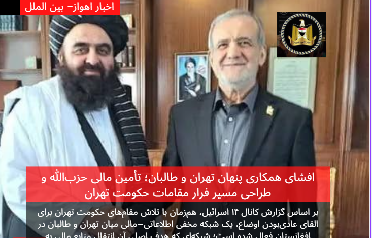 بر اساس گزارش کانال ۱۴ اسرائیل، همزمان با تلاش مقامهای حکومت تهران برای القای عادیبودن اوضاع، یک شبکه مخفی اطلاعاتی–مالی میان تهران و طالبان در افغانستان فعال شده است؛ شبکهای که هدف اصلی آن انتقال منابع مالی به حزبالله لبنان و آمادهسازی مسیرهای امن فرار برای مقامهای ارشد حکومت در صورت بروز بحرانهای حاد سیاسی یا نظامی عنوان میشود.
