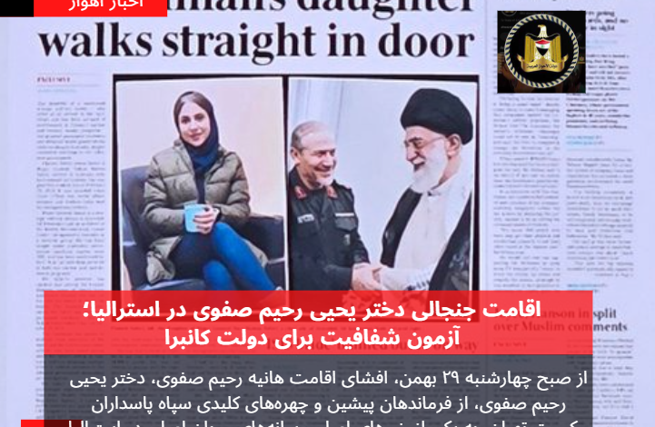 از صبح چهارشنبه ۲۹ بهمن، افشای اقامت هانیه رحیم صفوی، دختر یحیی رحیم صفوی، از فرماندهان پیشین و چهرههای کلیدی سپاه پاسداران حکومت تهران، به یکی از خبرهای اصلی رسانههای جریان اصلی در استرالیا تبدیل شده است. این پرونده اکنون به موضوعی داغ در روزنامهها، شبکههای تلویزیونی و فضای سیاسی کانبرا بدل شده و دولت استرالیا را با پرسشهای جدی درباره شفافیت و معیارهای امنیتی مهاجرتی روبهرو کرده است.
