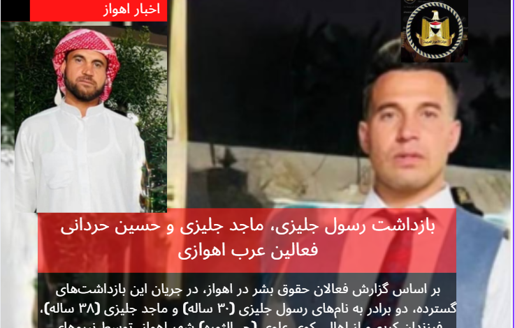 بازداشت رسول جلیزی، ماجد جلیزی و حسین حردانی فعالین عرب اهوازی