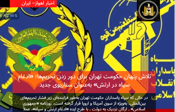 در حالی که سپاه پاسداران حکومت تهران به‌طور فزاینده‌ای زیر فشار تحریم‌های بین‌المللی، به‌ویژه از سوی آمریکا و اروپا قرار گرفته است، روزنامه «جمهوری اسلامی» ـ ارگان نزدیک به دولت ـ با طرح ایده «ادغام ارتش و سپاه»، عملاً سناریویی بحث‌برانگیز را وارد فضای سیاسی و امنیتی حکومت تهران کرده است؛ سناریویی که بیش از آن‌که ریشه در اصلاح ساختاری داشته باشد، نشانه‌ای از تلاش حکومت برای کاهش آثار تحریم‌ها ارزیابی می‌شود.