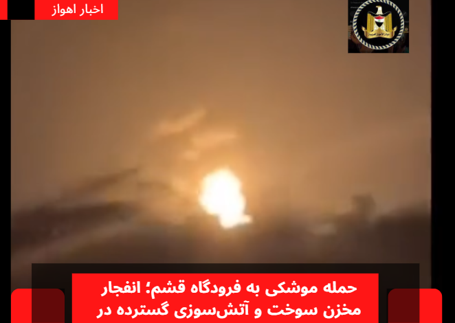 حمله موشکی به فرودگاه قشم؛ انفجار مخزن سوخت و آتشسوزی گسترده در جزایر بندر عباس