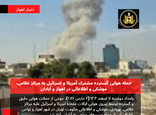 حمله هوایی گسترده مشترک آمریکا و اسرائیل به مراکز نظامی، موشکی و اطلاعاتی درآبادان و خرمشهر