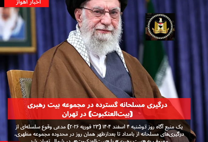یک منبع آگاه روز دوشنبه ۴ اسفند ۱۴۰۴ (۲۳ فوریه ۲۰۲۶) مدعی وقوع سلسلهای از درگیریهای مسلحانه از بامداد تا بعدازظهر همان روز در محدوده مجموعه مطهری، معروف به «بیت رهبری» یا «بیتالعنکبوت»، در شمال تهران شد.