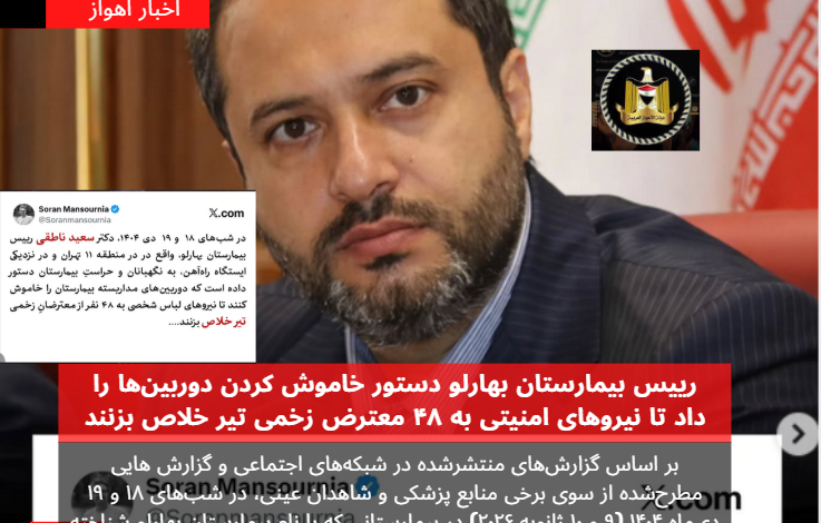 رییس بیمارستان بهارلو دستور خاموش کردن دوربینها را داد تا نیروهای امنیتی به ۴۸ معترض زخمی تیر خلاص بزنند