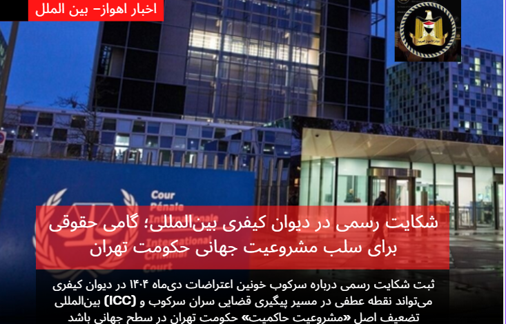 همزمان با افزایش فشارهای بینالمللی علیه حکومت تهران، ثبت شکایت رسمی درباره سرکوب خونین اعتراضات دیماه ۱۴۰۴ در دیوان کیفری بینالمللی (ICC) میتواند نقطه عطفی در مسیر پیگیری قضایی سران سرکوب و تضعیف اصل «مشروعیت حاکمیت» حکومت تهران در سطح جهانی باشد.