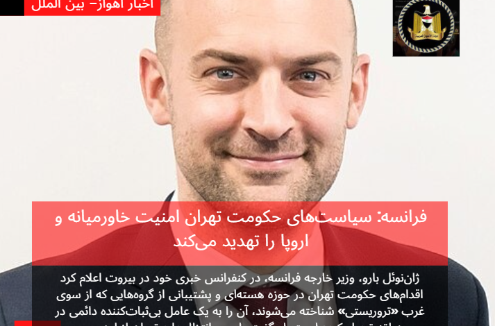 وزیر خارجه فرانسه با هشدار نسبت به نقش فزاینده حکومت تهران در بی‌ثبات‌سازی منطقه، تأکید کرد که تداوم برنامه هسته‌ای و حمایت از گروه‌های مسلح، نه‌تنها خاورمیانه بلکه امنیت اروپا را نیز با تهدید مستقیم روبه‌رو کرده است.