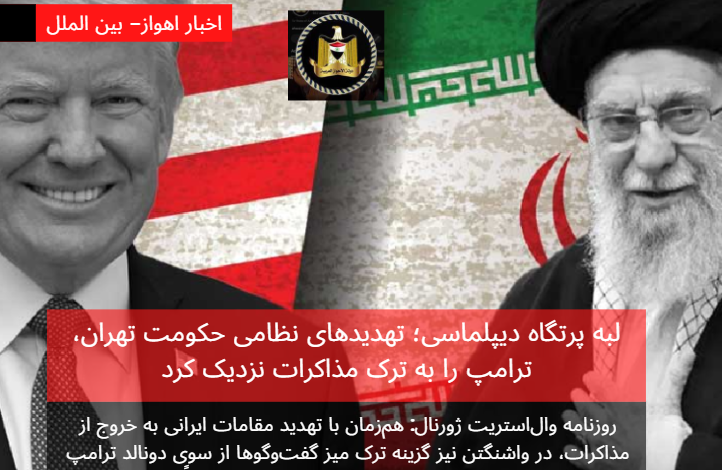 روزنامه والاستریت ژورنال در گزارشی از تشدید تنش میان ایالات متحده و حکومت تهران خبر داد و نوشت همزمان با تهدید مقامات ایرانی به خروج از مذاکرات، در واشنگتن نیز گزینه ترک میز گفتوگوها از سوی دونالد ترامپ بهطور جدی در حال بررسی است؛ تصمیمی که مستقیماً به «اقدامات تهاجمی» حکومت تهران نسبت داده شده است.