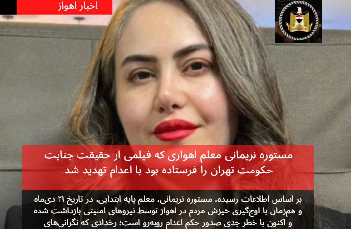 مستوره نریمانی معلم اهوازی که فیلمی از حقیقت جنایت حکومت تهران را فرستاده بود با اعدام تهدید شد