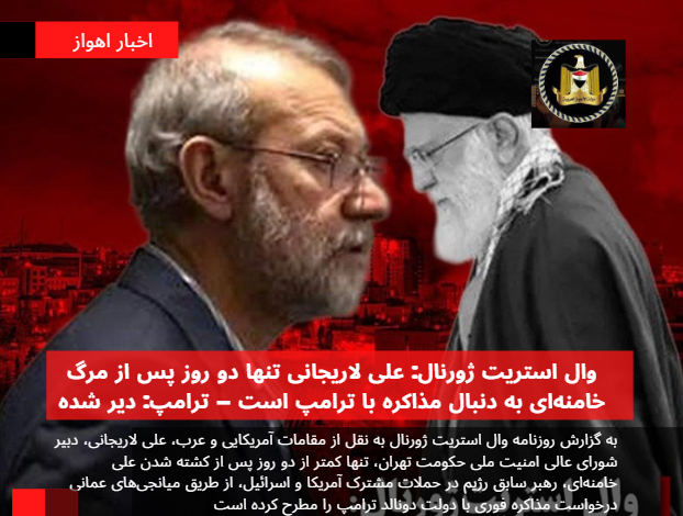 به گزارش روزنامه وال استریت ژورنال به نقل از مقامات آمریکایی و عرب، علی لاریجانی، دبیر شورای عالی امنیت ملی حکومت تهران، تنها کمتر از دو روز پس از کشته شدن علی خامنهای، رهبر سابق رژیم در حملات مشترک آمریکا و اسرائیل، از طریق میانجیهای عمانی درخواست مذاکره فوری با دولت دونالد ترامپ را مطرح کرده است.