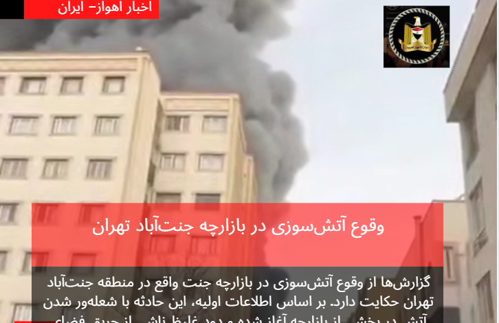 گزارشها از وقوع آتشسوزی در بازارچه جنت واقع در منطقه جنتآباد تهران حکایت دارد. بر اساس اطلاعات اولیه، این حادثه با شعلهور شدن آتش در بخشی از بازارچه آغاز شده و دود غلیظ ناشی از حریق فضای اطراف را فرا گرفته است.