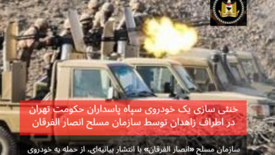 خنثی سازی یک خودروی سپاه پاسداران حکومت تهران در اطراف زاهدان توسط سازمان مسلح «انصار الفرقان»