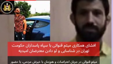 افشای همکاری میثم قنواتی با سپاه پاسداران حکومت تهران در شناسایی و لو دادن معترضان امیدیه