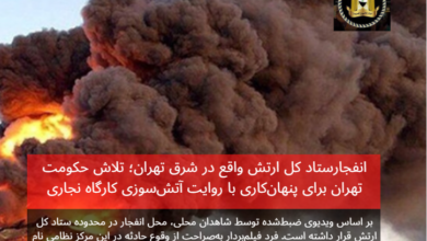 انفجارستاد کل ارتش واقع در شرق تهران؛ تلاش حکومت تهران برای پنهانکاری با روایت «آتشسوزی کارگاه نجاری»