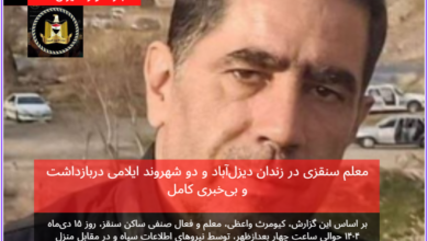 معلم سنقزی در زندان دیزلآباد و دو شهروند ایلامی دربازداشت و بیخبری کامل