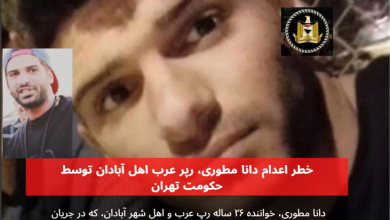 آبادان –خبرگزاری دولت اهواز دانا مطوری، خواننده ۲۶ ساله رپ عرب و اهل شهر آبادان، که در جریان اعتراضات سراسری…